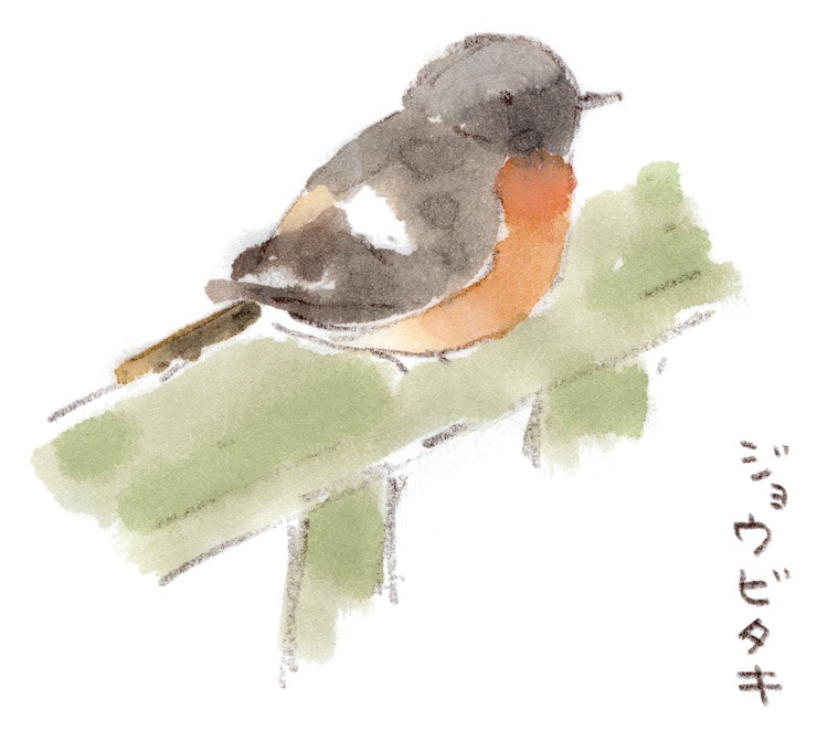 #ジョウビタキ #野鳥 #渡り鳥 #絵日記 #水彩画 #スケッチ