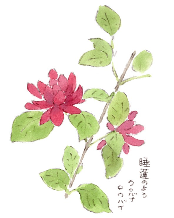 #クロバナロウバイ #茶花 #ワインレッド #ハイカラ #水彩画 #絵日記