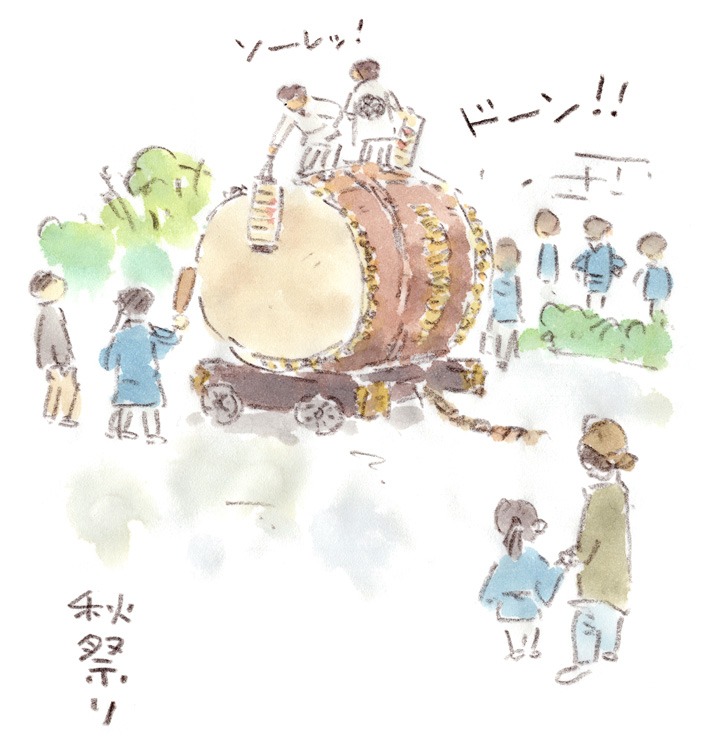 #秋祭り #大太鼓 #みちくさ #道草 #絵日記 #日記 #水彩画 #スケッチ