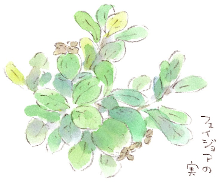 #フェイジョア #フルーツ #道草 #絵日記 #水彩画 #スケッチ