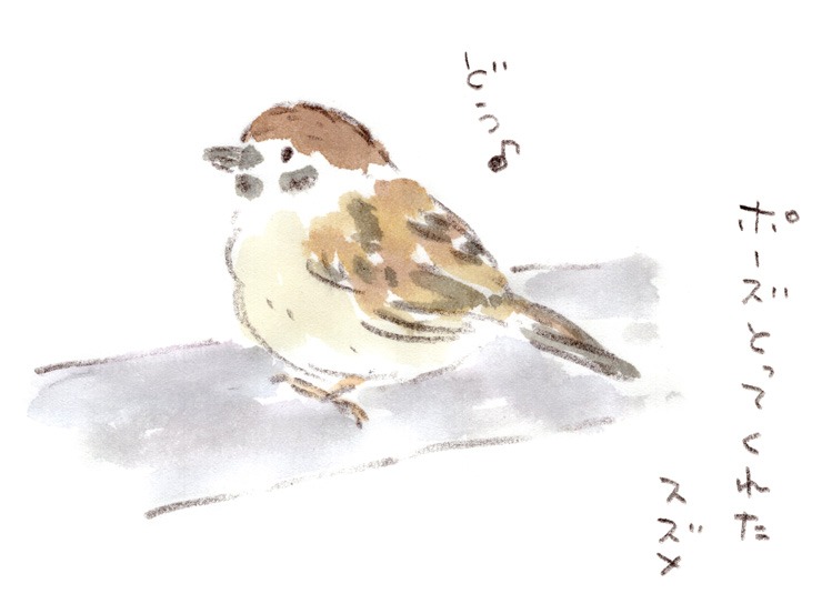 #スズメ #野鳥 #道草 #寄り道 #ほっこり #絵日記 #絵と言葉 #水彩画 #スケッチ