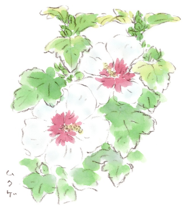 #ムクゲ #道草 #茶花 #ほっこり #絵日記 #絵と言葉