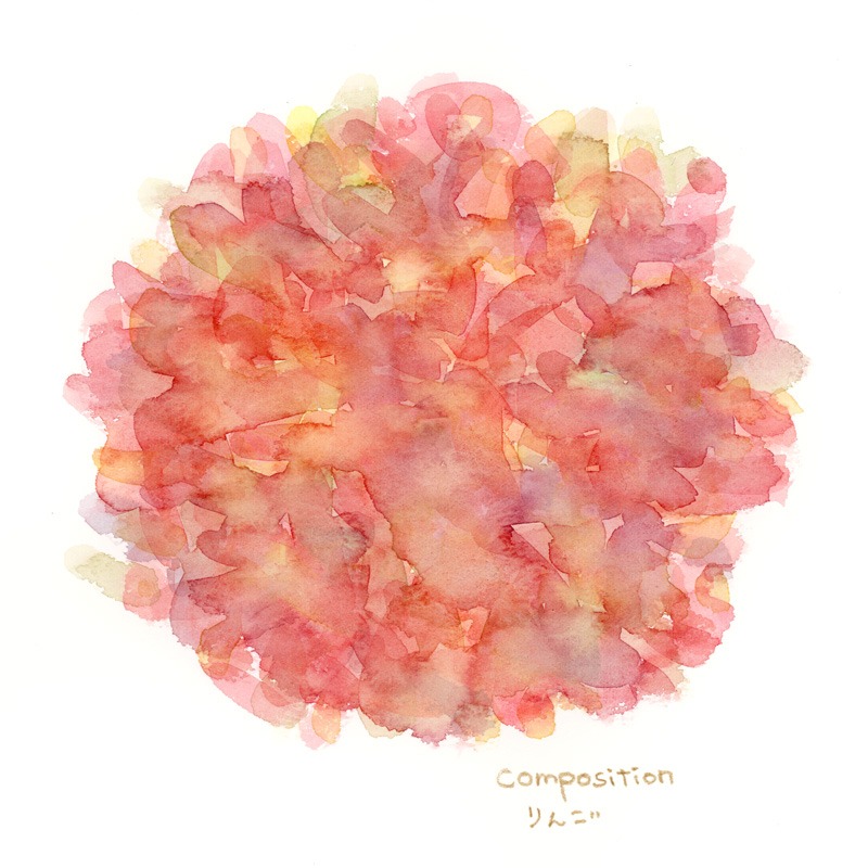 母から送ってもらったリンゴ。産地の方がお一人で育てていらっしゃるそうで、蜜が詰まっていて美味しい林檎でした。目の前に置いてリンゴの爽やかな香りを嗅ぎながら色彩スケッチしました。